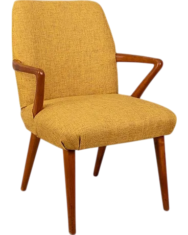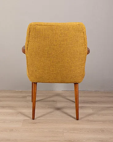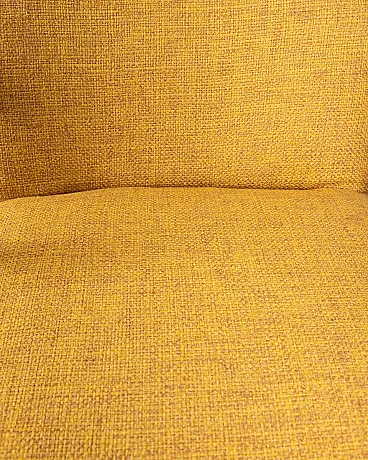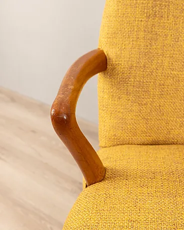 Poltrona con struttura in legno e rivestimento in tessuto giallo, design Italiano, anni '60.