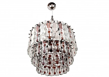 Lampadario attribuito a Fontana Arte, anni '70. Struttura in metallo cromato con vetri scalpellinati e serigrafati. Condizioni eccellenti con alcuni segni del tempo, perfettamente funzionante, con impianto elettrico originale.