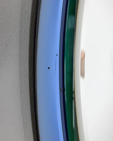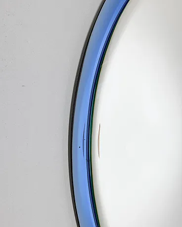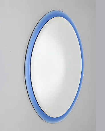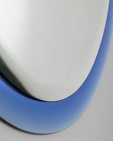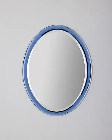Specchio ovale da parete con cornice in cristallo blu, design Antonio Lupi per Cristal Luxor, anni 70.