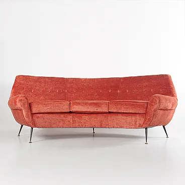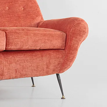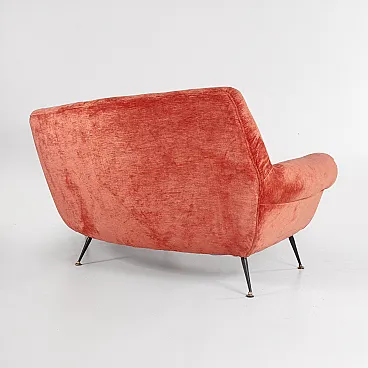 Divano in velluto terracotta nello stile di Gigi Radice, anni '60