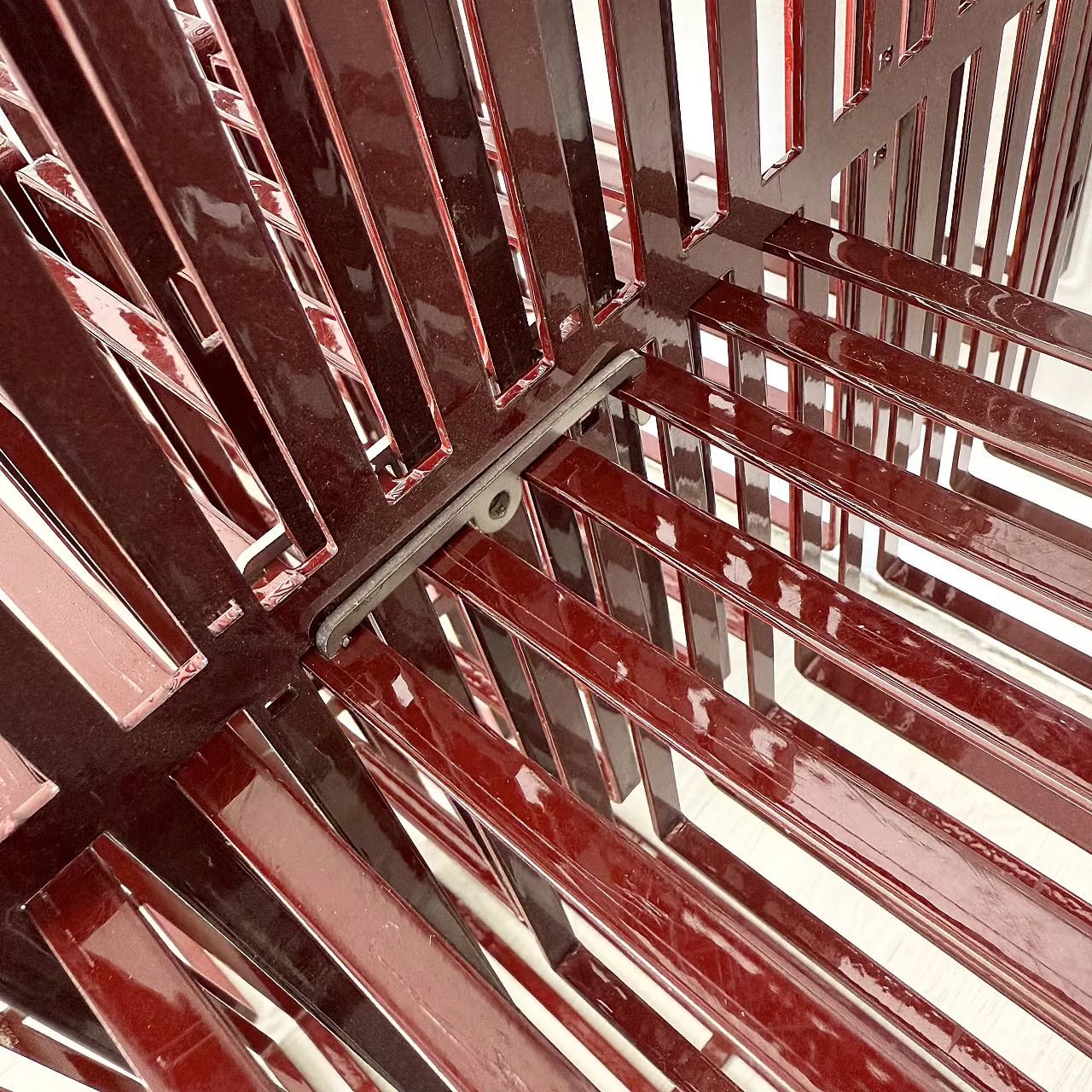 Mobile libreria modulare Epoca design: anni ’90 Materiale: acciaio laccato bordeaux Provenienza: Italia I moduli sono 11 e possono essere interconnessi tra loro per formare ogni combinazione scelta. Dei supporti metallici in dotazione vincolano un modulo all’altro. Può presentare segni e usura dovuti al tempo e all’utilizzo. Misure di ciascun modulo: 30,5 x 28 x 38 cm