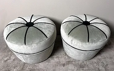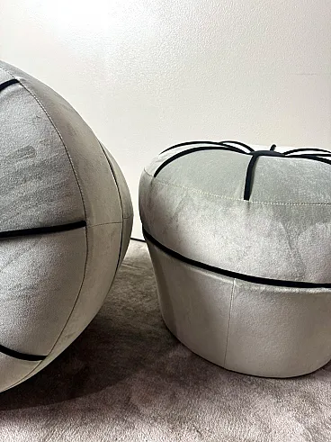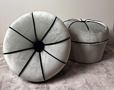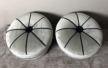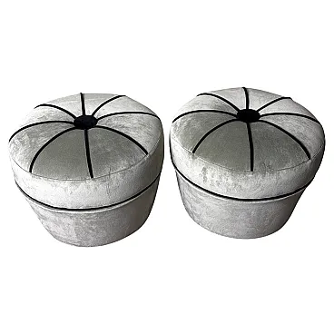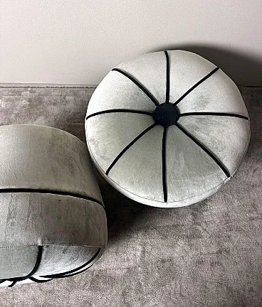 Questa raffinata coppia di pouf italiani incarna perfettamente l'equilibrio tra design vintage e artigianato contemporaneo. Realizzati originariamente negli anni '60 (1960-1965) utilizzando la finta pelle, come era nello stile dell'epoca, questi mobili provengono da una regione storicamente rinomata per la produzione di mobili di alta qualità. Sono stati realizzati a Meda, nella provincia di Monza e Brianza, in Lombardia (Italia) - una località famosa per la sua industria del design e la sua lunga tradizione di mobili classici e moderni realizzati a mano, in particolare durante l'epoca d'oro del modernismo italiano. Gli artigiani che hanno creato questi pezzi si sono ispirati alle tendenze degli affascinanti e creativi anni '60, un'epoca definita dalla libertà espressiva e dall'innovazione, segnata da una varietà di stili e movimenti che ne hanno arricchito l'estetica. Il design di questi pouf riflette la preferenza per le forme arrotondate, la libertà compositiva, la leggerezza e la semplicità. L'obiettivo era quello di creare due mobili compatti ma audaci ed essenziali, conferendo alla coppia un'eleganza senza tempo. Il loro design bilancia austerità e precisione, mentre le linee pulite aggiungono un carattere dinamico e raffinato. Qui la creatività del designer e l'esperienza dell'artigiano si fondono per creare un pezzo esclusivo: un complemento d'arredo unico, sofisticato ed elegante, perfetto sia per gli interni moderni che per quelli classici. Abbiamo restaurato con cura la loro bellezza attraverso un processo meticoloso e interamente fatto a mano, selezionando un lussuoso velluto grigio che esalta la loro forma arrotondata. Le finiture in velluto nero aggiungono un tocco di sofisticata eleganza. La seduta è morbida e ben ammortizzata. Le loro dimensioni le rendono ideali come sedute aggiuntive o come elementi decorativi di grande effetto. Anche se il loro aspetto è stato rinnovato, questi pouf conservano tutto il fascino del loro design originale, rendendoli una scelta perfetta per chi cerca un pezzo unico, che racconti una storia e arricchisca qualsiasi spazio con stile e personalità. Desideriamo sottolineare che l'intero restauro della tappezzeria è stato eseguito a mano con abilità e precisione da un maestro artigiano di Prato, in Italia. Vale la pena sottolineare che Prato è considerata uno dei più importanti poli tessili del mondo, dove artigiani e aziende specializzate stabiliscono gli standard di creatività, qualità ed eccellenza del settore. Essendo stati sottoposti a un restauro completo, i pouf sono in perfette condizioni. Dimensioni: Diametro 53 cm, altezza 38 cm.