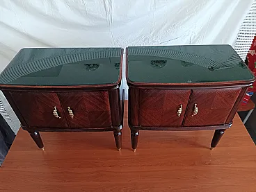 Coppia di comodini Mid Century in radica di palissandro, anni '50
