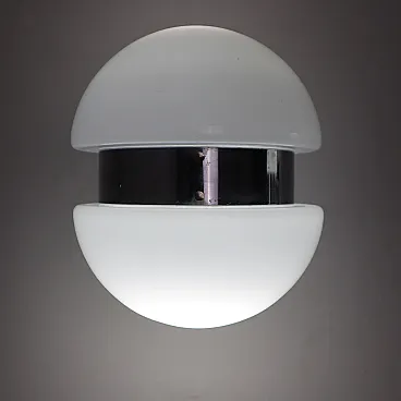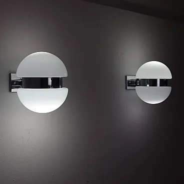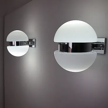 Coppia di lampade da muro in vetro opalino, Italia, anni 70