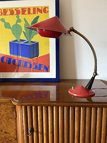 Mid century red desk Lamp, Stilux Milan Italy 1960 ca.