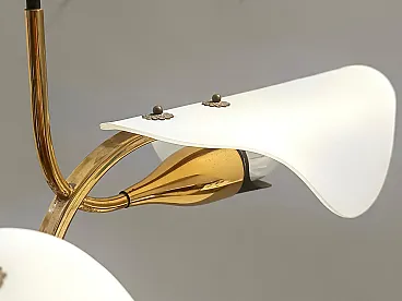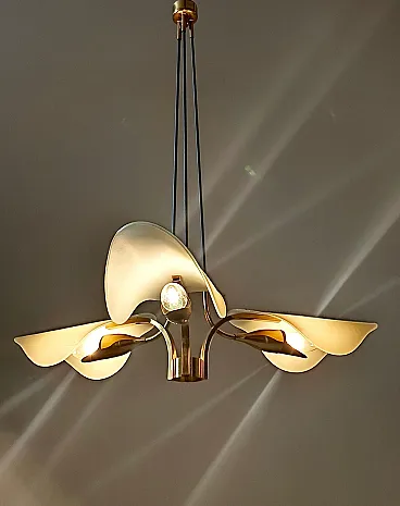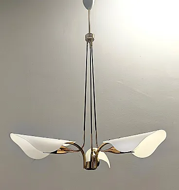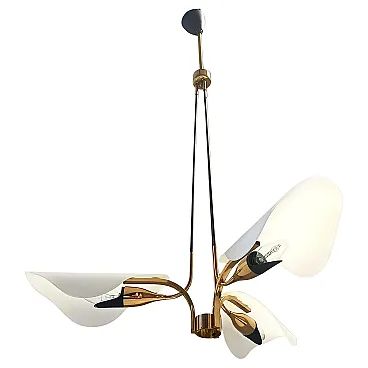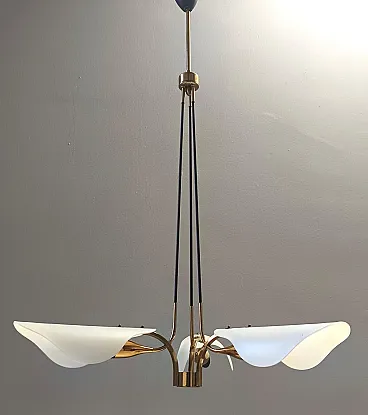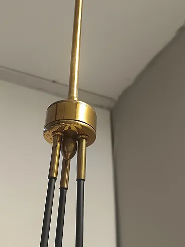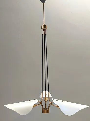 Made in Italy, 1950s. It features three arms and is made in brass and glass. This chandelier may show slight traces of use since it's vintage, but it can be considered as in excellent original condition. Compatible with the USA. Measures: Diameter: 70 cm Height: 100 cm. Order it now! We sell the best quality pieces and we offer an amazing service: if it's not during night time, we answer within 2 hours and we absolutely love to follow every step of the purchase and even after. As matter of fact we really appreciate our customers’ feedback and when we receive pictures of our pieces in their new homes. We assist you during the process and answer all your questions. In addition to this, we always review the pieces before shipping, so that you receive the goods at its very best. We provide the best possible quotes and professionally and carefully pack the items. Insurance is included. And if there is any issue, it is our mission to make so you don't have to worry: we will always be there for you to assist in any way possible.