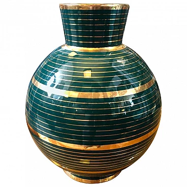 Vaso in ceramica verde e oro nello stile di Gio Ponti, anni '60