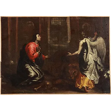 Daniele nella fossa dei Leoni, olio su tela, '600
