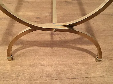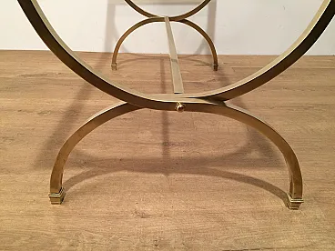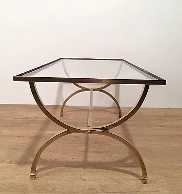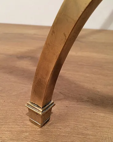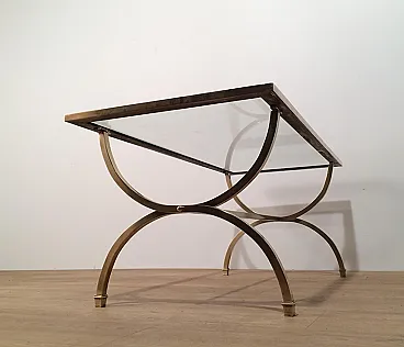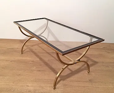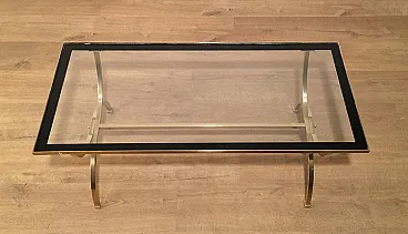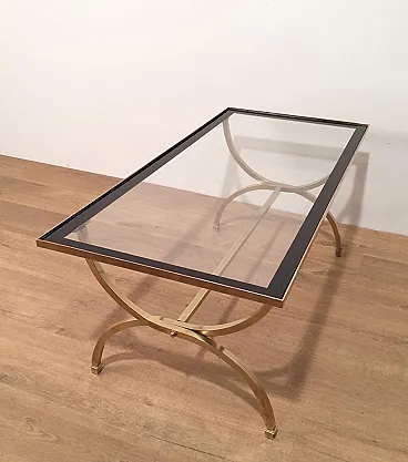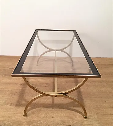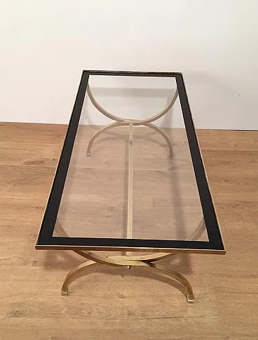 Tavolino in ottone con piano in vetro e bordi laccati neri, anni '40