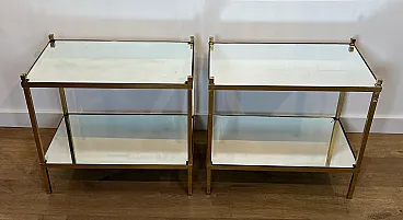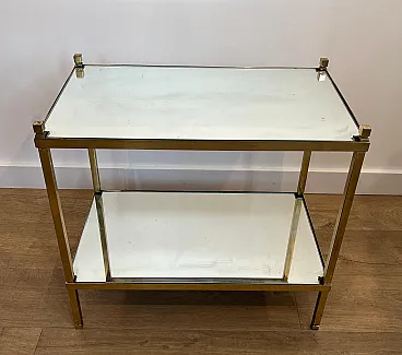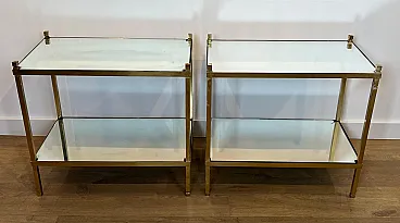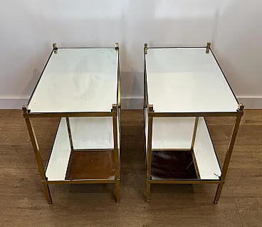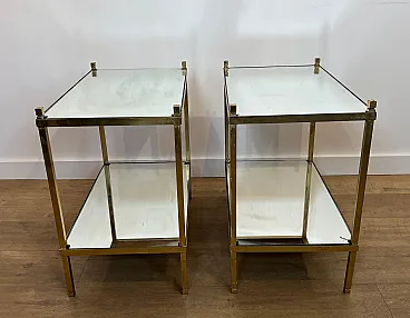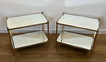 Coppia di tavolini in ottone dorato con piani a specchio, anni '70