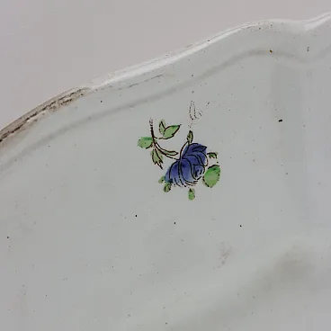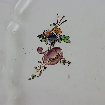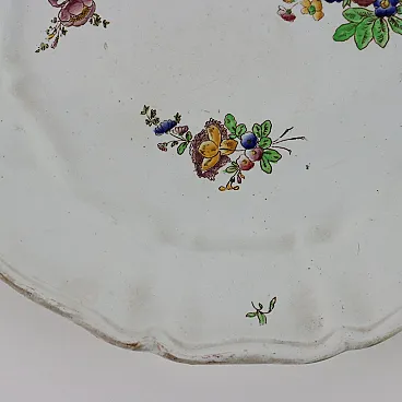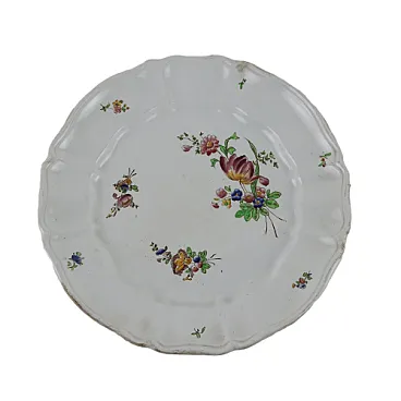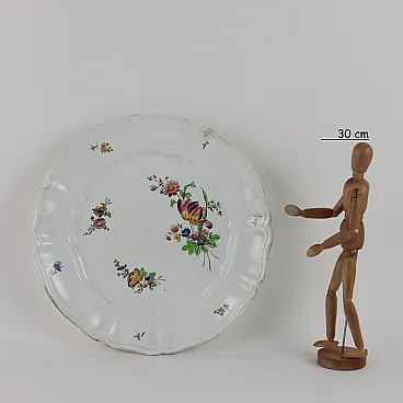 Piatto tondo da portata in ceramica con bordo sagomato e decoro floreale Vecchia Lodi. Marchio al verso: Vecchia Lodi Società Ceramica Richard.