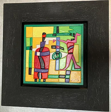 Ugo Nespolo, Icone, acrilici su intarsi, 2000