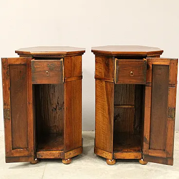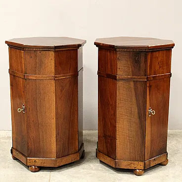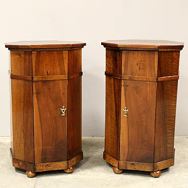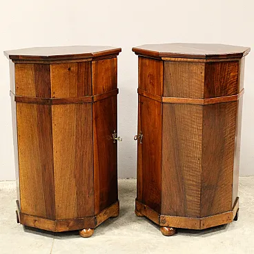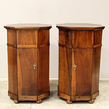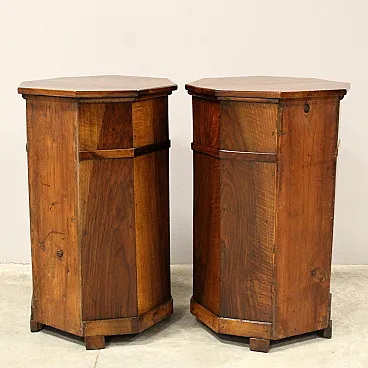 Coppia comodini colonne Luigi Filippo in noce, '800