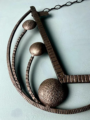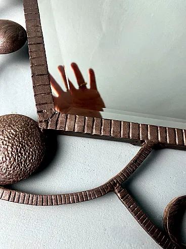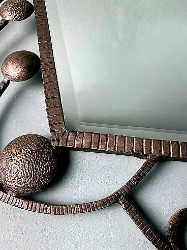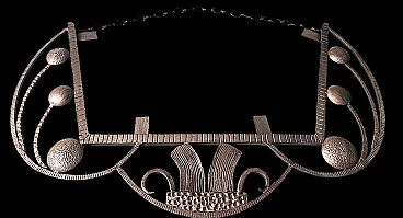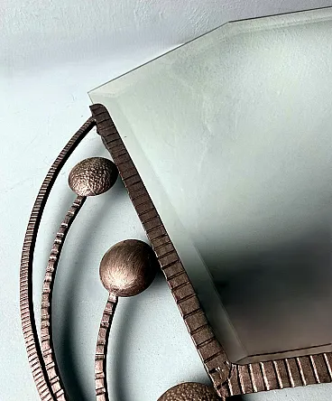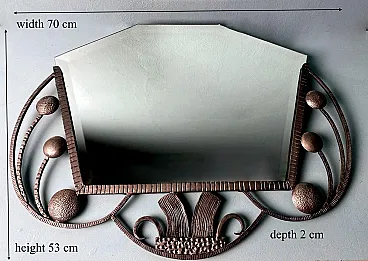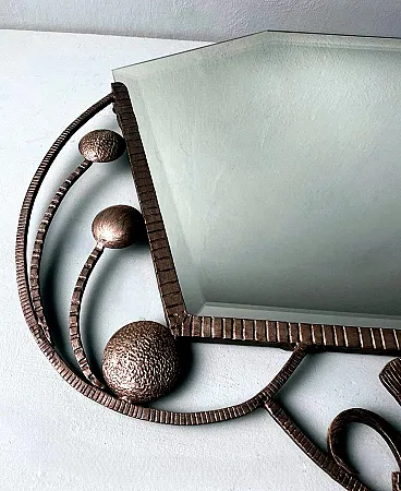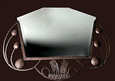 Questo squisito specchio francese Art Nouveau è un notevole esempio di artigianato, caratterizzato da una cornice in ferro battuto finemente lavorata. Lo specchio smussato si inserisce perfettamente nella struttura, che è stata progettata per essere montata a parete grazie a una discreta catena nascosta sul retro, garantendo un'estetica pulita e sofisticata. Questo specchio è stato realizzato tra il 1905 e il 1910 a Nancy, in Francia, una città famosa per essere un importante centro dell'Art Nouveau. Le curve fluide della cornice, i motivi floreali e il design ispirato alla natura sono i tratti distintivi di questo movimento artistico. Nancy era all'avanguardia in questo stile, soprattutto grazie all'influenza della famosa École de Nancy, fondata da maestri artigiani come Émile Gallé e Louis Majorelle. Nancy divenne anche un centro per l'arte del ferro battuto, con artigiani rinomati come Louis Majorelle e Edgar Brandt, celebri per i loro design eleganti e organici. Questo specchio incarna l'essenza del loro lavoro, riflettendo il gusto raffinato e l'eccellenza artistica dell'epoca. Creare uno specchio in ferro battuto richiede un'abilità eccezionale. Il processo inizia con un'accurata selezione del ferro, che viene poi riscaldato finché non diventa malleabile. L'artigiano modella meticolosamente il metallo utilizzando martelli e strumenti specializzati, creando curve intricate e dettagli delicati che definiscono l'estetica Art Nouveau. Una volta completati gli elementi decorativi, questi vengono sapientemente assemblati per formare la cornice (vedi foto del retro). Lo specchio smussato è incastonato con precisione all'interno della struttura, garantendo un'integrazione perfetta tra vetro e metallo. Questo specchio francese antico è un vero capolavoro di eleganza Art Nouveau, con proporzioni armoniose che si adattano a una varietà di interni. Le linee fluide e i motivi organici della cornice mostrano una maestria eccezionale, che riflette la dedizione dell'epoca ai dettagli e la passione per l'espressione artistica. Lo specchio smussato aumenta la luminosità e la profondità in qualsiasi spazio, mentre il sistema di sospensione a catena nascosta assicura una presentazione perfetta e raffinata. Più che un semplice complemento d'arredo funzionale, questo specchio è una vera e propria opera d'arte, capace di arricchire qualsiasi ambiente con il suo fascino senza tempo. Perfetto per ingressi, soggiorni o camere da letto, è un tesoro unico per i collezionisti e gli amanti del design antico, pronto a portare un tocco di storia e arte francese nella tua casa. Questo specchio è in condizioni eccellenti. Dimensioni Larghezza: 70 cm (27,5 pollici) Altezza: 53 cm (20,8 pollici) Profondità: 2 cm (0,8 pollici)
