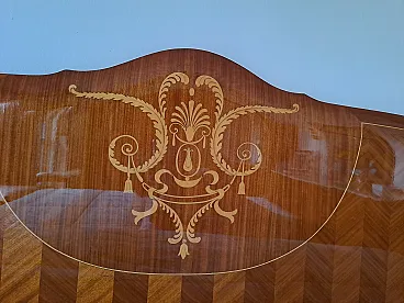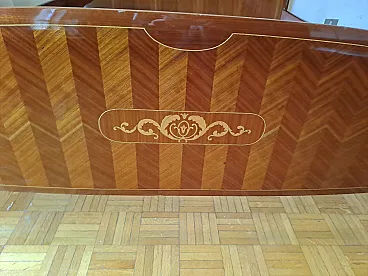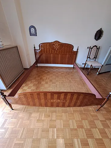 Letto matrimoniale in legno con intarsi, fatto da un artigiano in Brianza. Misura: 180 x 196. Piedini e pomelli in bronzo Ottime le condizioni. Non ci sono tarli o graffi