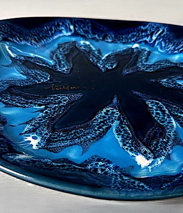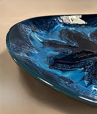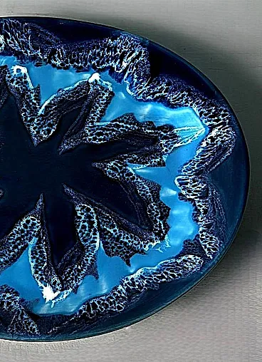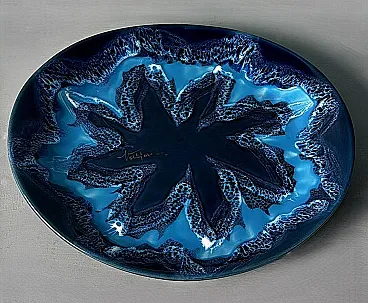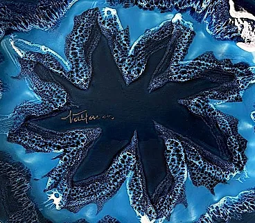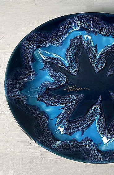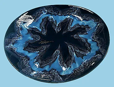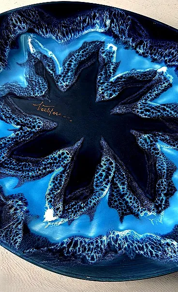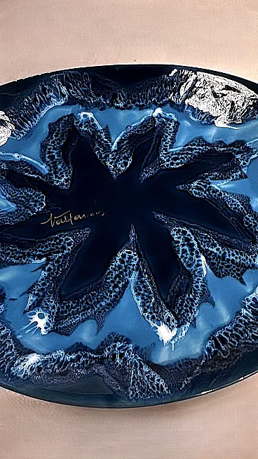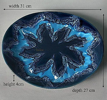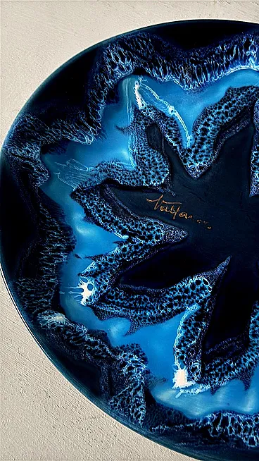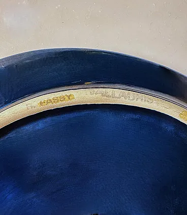 Questo affascinante centrotavola ovale in ceramica blu ha una forma armoniosa e ben bilanciata. Tuttavia, ciò che spicca è l'eccezionale combinazione di varie tonalità di blu, che crea un effetto dinamico e di grande impatto visivo. Realizzato tra il 1970 e il 1975 in uno degli ultimi laboratori rimasti a Vallauris, questo pezzo reca la firma dipinta "Vallauris" e un marchio impresso sul bordo inferiore, che include anche il nome dell'artista, Raymond Fassy. Vallauris, una città della regione Provenza-Alpi-Costa Azzurra nel sud della Francia, è rinomata per la sua lunga tradizione di artigianato ceramico. Sebbene la produzione di ceramica a Vallauris risalga a secoli fa, la città ha vissuto una vera e propria rinascita artistica nel XX secolo, attirando numerosi artisti e artigiani. Negli anni '30, le ceramiche di Vallauris, originariamente progettate per scopi utilitari, subirono una trasformazione estetica, evolvendo gradualmente in vere e proprie opere d'arte. Un momento cruciale per la città arrivò nel 1948 con l'arrivo di Pablo Picasso. Catturato dalla ceramica, Picasso si trasferì a Vallauris, dove rimase fino al 1955, dedicandosi intensamente all'artigianato e creando opere iconiche come Guerra e Pace. La sua presenza, insieme a quella di artisti come Chagall e Miró, contribuì ad affermare Vallauris come centro artistico di primo piano. Tra gli artigiani locali, Raymond Fassy occupa un posto di rilievo. Nato il 6 dicembre 1950 a Monaco, ha trascorso l'infanzia ad Antibes prima di stabilirsi definitivamente a Vallauris nel 1968. Nel 1971 incontra Maryse Parodi, con la quale condivide la passione per la ceramica. Fassy aprì il suo laboratorio nella parte inferiore dell'Avenue Clemenceau, dove creò ceramiche ispirate allo stile che rese famosa Vallauris AM negli anni '50 e '60. Le sue opere, note per le forme originali e gli smalti vivaci, includono oggetti decorativi come posacenere a forma di scarpa e vassoi artistici. Purtroppo, come molti altri ceramisti del suo tempo, Fassy ha cessato la sua attività nel marzo 2012. Si è spento il 10 dicembre 2019, lasciando un'importante eredità nel mondo della ceramica di Vallauris. Tutti i pezzi prodotti nei laboratori di Vallauris sono interamente realizzati a mano da abili ceramisti animati da una profonda passione. Tuttavia, questo antico mestiere ha subito un notevole declino negli ultimi decenni: degli oltre 250 laboratori di ceramica un tempo attivi nella città, oggi ne rimangono solo alcuni, che conservano una tradizione che rischia di scomparire. Nonostante ciò, Vallauris continua a celebrare il suo ricco patrimonio ceramico attraverso musei e atelier. Il Musée de la Céramique, ad esempio, offre ai visitatori una panoramica dell'evoluzione della ceramica locale nel corso dei secoli, mentre l'atelier Madoura, fondato da Suzanne e Georges Ramié, ospita una collezione di opere di Picasso e altri artisti contemporanei. La città rimane una destinazione chiave per gli appassionati di ceramica, offrendo un mix unico di storia, arte e artigianato. Il centrotavola è in buone condizioni. Dimensioni: Lunghezza: 31 cm (12,2 pollici) Larghezza: 27 cm (10,6 pollici) Altezza: 4 cm (1,6 pollici)