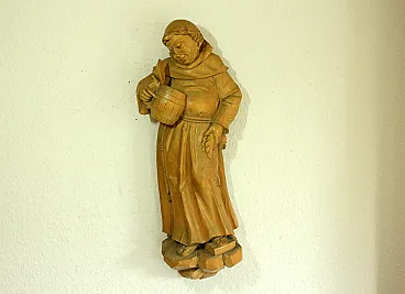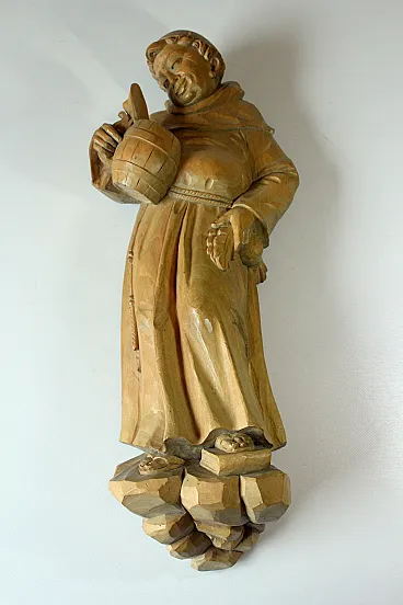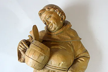 Scultura tedesca in legno "Monaco con tankard", anni '50