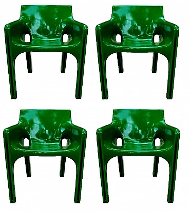 4 Sedie verdi Gaudi di Vico Magistretti per Artemide, anni '70. Cm 45 di altezza della seduta da terra. Condizioni molto buone, come da foto, leggerissimi segni, graffietti, del tempo e dell'uso.