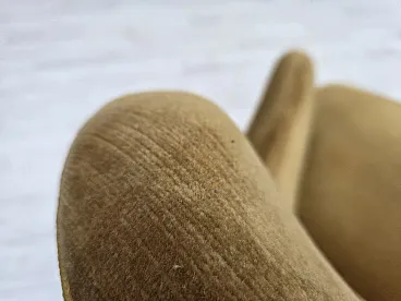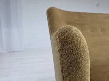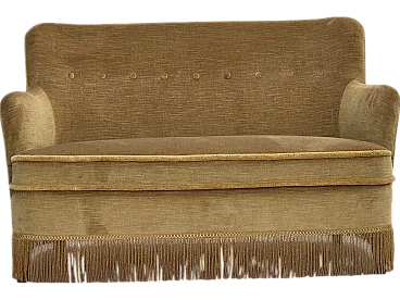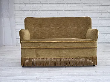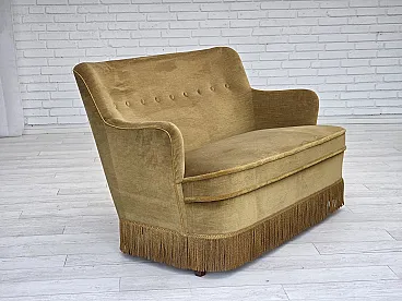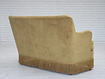 Divano danese a 2 posti, velluto verde chiaro originale, anni '70