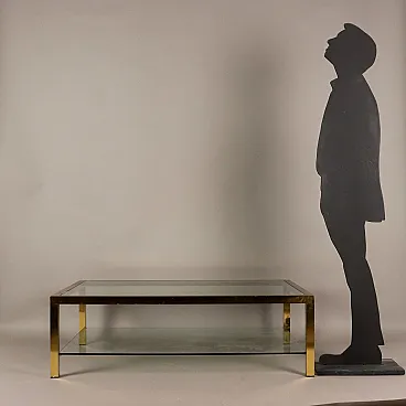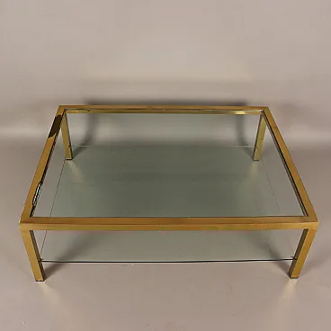Grande tavolino da caffè in ottone e vetro, fine '900