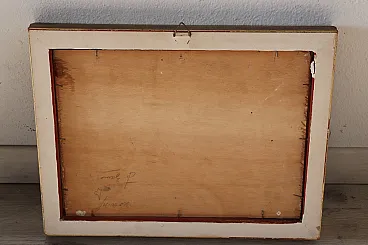 Il dipinto presenta una buona qualità pittorica, con un'attenta cura dei dettagli e dei colori che danno vita al paesaggio. È incorniciato splendidamente in una cornice dorata, che ne esalta l'estetica complessiva. Questo pezzo sarebbe una splendida aggiunta a qualsiasi collezione d'arte, invitando all'ammirazione e alla contemplazione da parte di tutti coloro che lo incontrano.