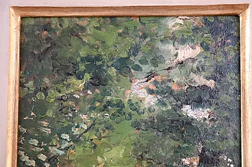 Questo dipinto racchiude magnificamente l'essenza dell'arte paesaggistica del XIX secolo, mostrando la notevole capacità dell'artista di evocare emozioni attraverso la natura. Lo stile veristico esalta il realismo della scena, permettendo agli spettatori di sentirsi come se stessero entrando nella vibrante foresta. Il gioco di luci e ombre, con la luce del sole che filtra attraverso le foglie, crea un'atmosfera accattivante che attira lo sguardo in profondità nella composizione.