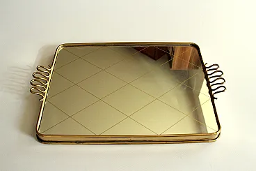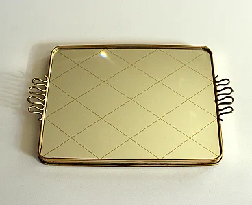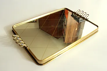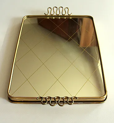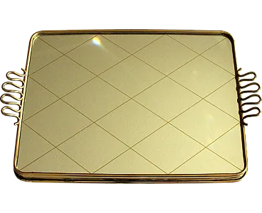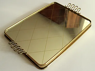 Specchio in ottone che serve vassoio, anni '50