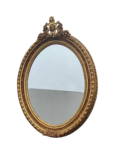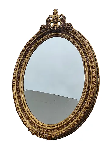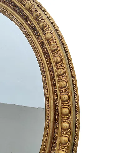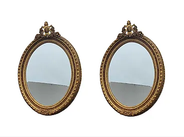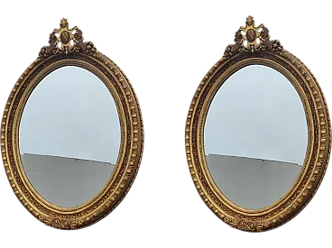Coppia di specchi ovali Luigi XVI in legno dorato, anni '60