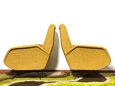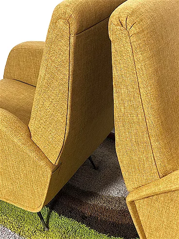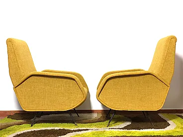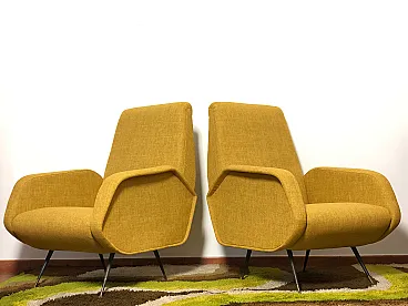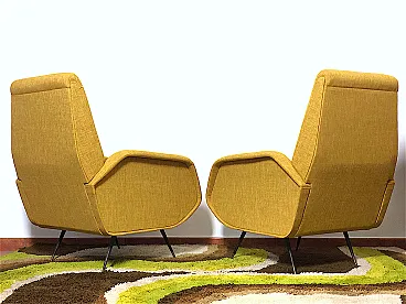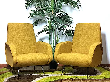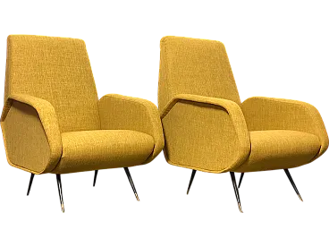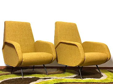 Coppia di poltrone Vintage Anni 60 Made in Italy. Queste Poltrone Vintage degli anni 60 incarnano lo stile e l'eleganza del design italiano dell' epoca, design Marco Zanuso. Un perfetto esempio di artigianato e innovazione,le poltrone rappresentano un equilibrio tra forma e funzione,linee pulite e un' attenzione meticolosa ai dettagli. Le poltrone sono caratterizzate da una struttura solida in legno massello,il rivestimento è realizzato in cotone di colore Lt.Yellow, la seduta è ampia e accogliente progettata per offrire il massimo del comfort, imbottitura sia per la seduta e lo schienale completamente sostituiti. Le poltrone sono stata completamente restaurate,piedi in ottone con il classico design degli anni 60. CONDIZIONI PERFETTE Misure: Altezza cm 93-Larghezza cm 70-Profondità cm 80-Altezza seduta cm 40-Seduta cm 53 x 50