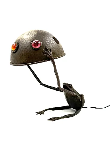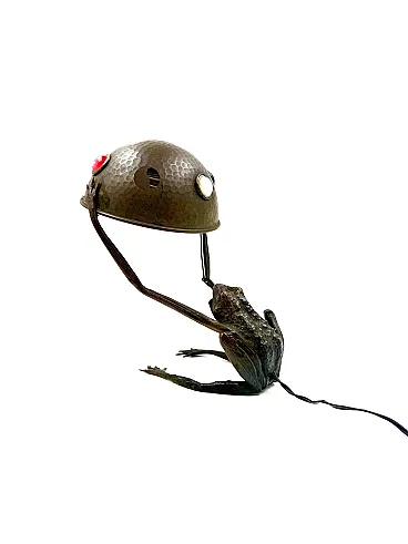 Lampada in bronzo a forma di rana Jugenstil, Austria, 1900