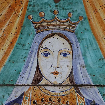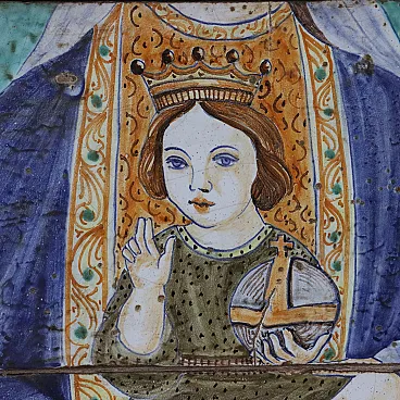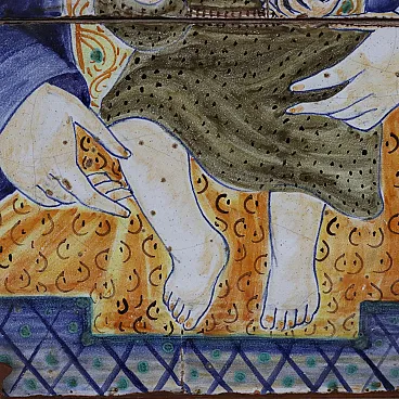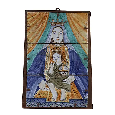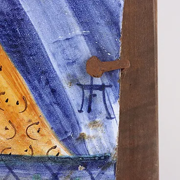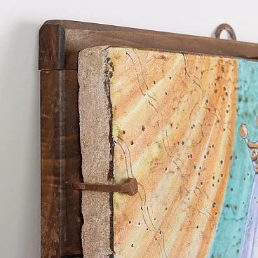 Soggetto religioso, quadro in maiolica e legno, '900