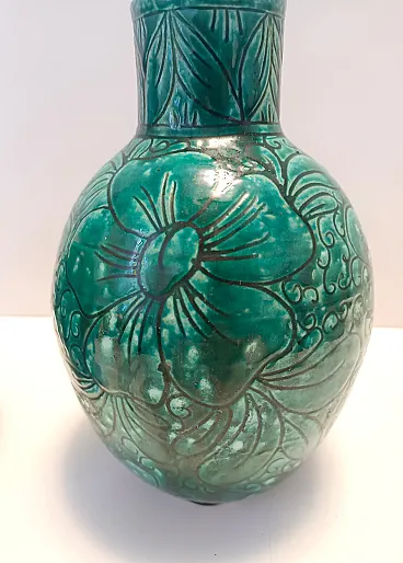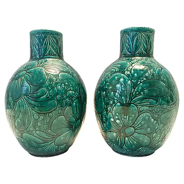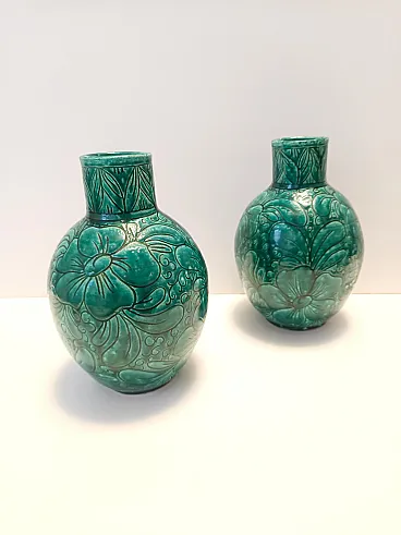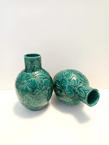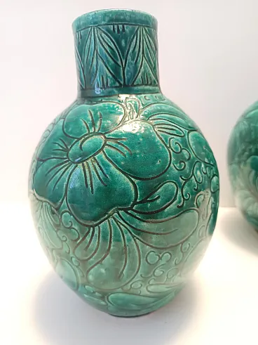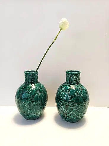 Coppia di vasi in ceramica verde di Fanciullacci, anni '70