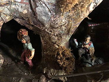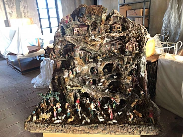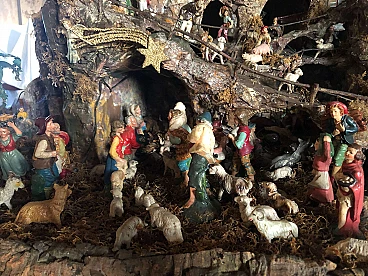 Presepio di origine napoletana in cartapesta e statuine, anni '60