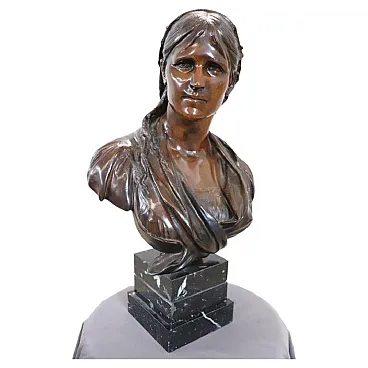 Siamo lieti di presentare questa splendida scultura in bronzo raffigurante un busto di giovane donna. Il bronzo è reca firma al retro ma l'artista non è stato identificato.