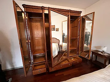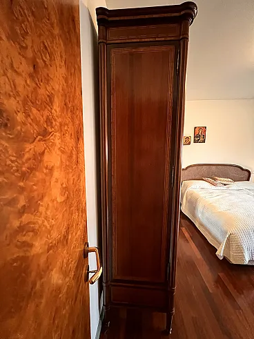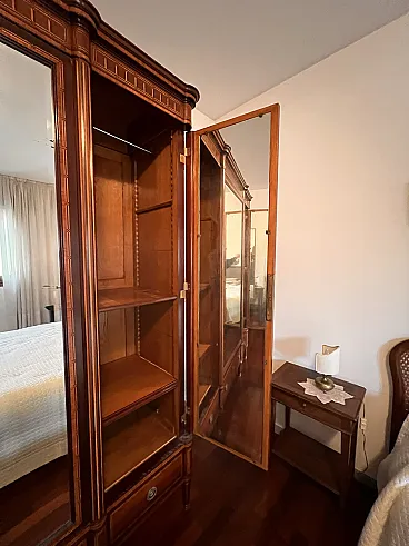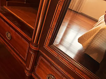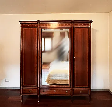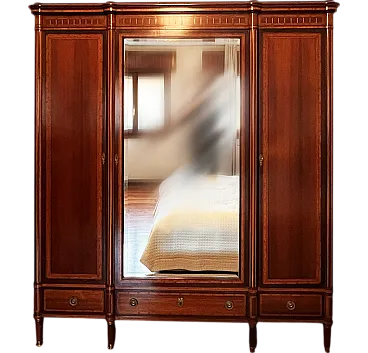 Causa trasloco svendo splendido armadio antico in stile Luigi XVI, probabilmente risalente alla fine del XIX secolo o inizio XX secolo. Realizzato in legno massello con raffinati intarsi, presenta tre ante, di cui una centrale con specchio originale, e cassetti nella parte inferiore. La lavorazione artigianale e i dettagli decorativi ne fanno un pezzo unico ed elegante, perfetto per arredare con classe camere da letto o ambienti in stile classico.