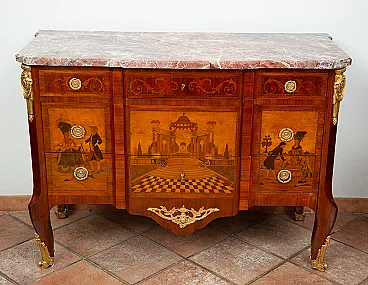 Cassettone Napoleone III Francese in legni esotici pregiati, '800