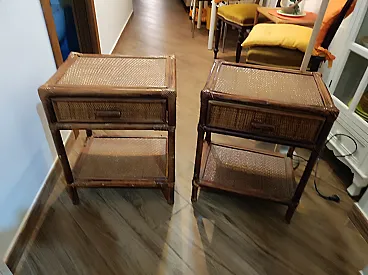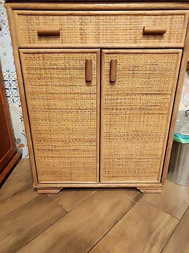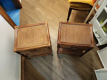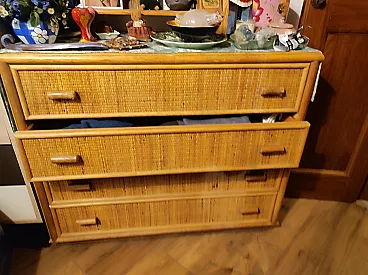 Cassettiera, comodini e credenzina Rattan, anni '70