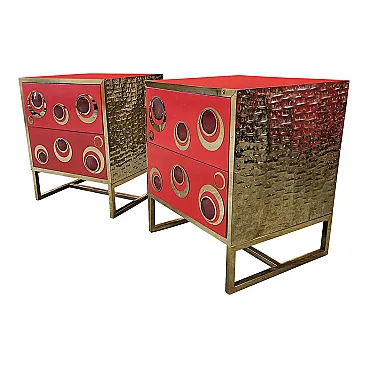Coppia di comodini in vetro e ottone, anni '90