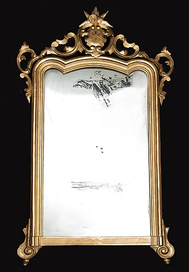 Descrizione: Specchiera Luigi Filippo napoletana della prima metà del 800 interamente scolpita, intagliata e dorata a foglia oro.