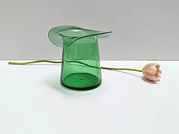 Cylindrical Green Hand-Blown Glass Vase, Empoli, Italy