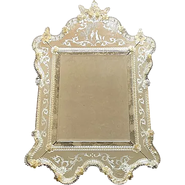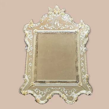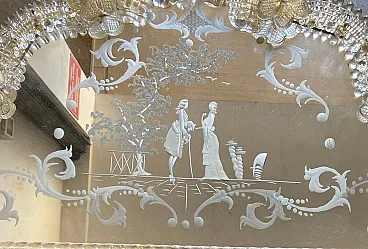 Additional Item Information - Large Venetian Murano Glass Wall Mirror Etched mirror glass figuring Gentleman and a Lady in courtship. Height 116 cm Width 76 cm