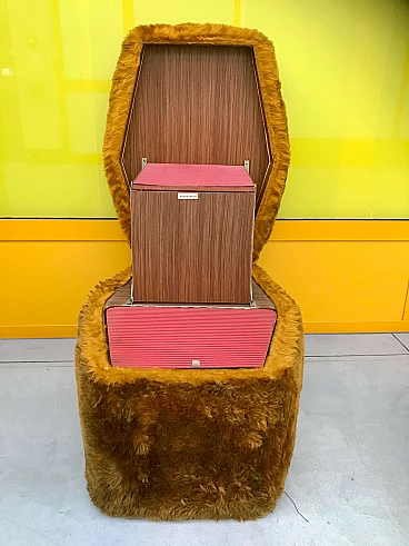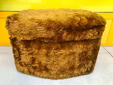 Pouf multifunzionale in pelo di floccato con contenitore e scala interna, anni’70