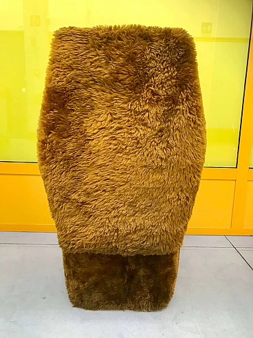 Simpatico pouf creato negli anni '70 con pelo di floccato, color marrone, con coperchio apribile, contenitore interno e scaletta. Ottime condizioni vintage. Il pelo, ancora molto bello, eventualmente da lavare a vapore. Aperto arriva ad una altezza di cm. 93