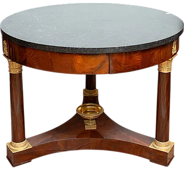 Tavolino Impero in piuma di mogano con piano in marmo nero, '800