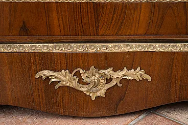 La base avente una forma fratinata è arricchita da una ghirlanda in bronzo dorato finemente cesellata. La chiave è coeva al mobile.