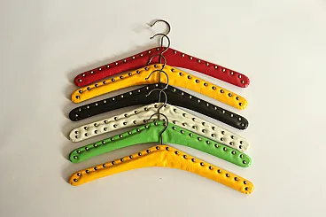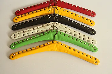 6 appendiabiti per cappotto in legno, pelle e metallo, anni '50