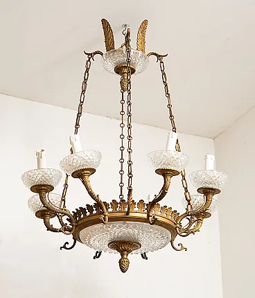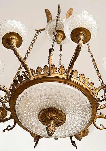 Lampadario Napoleone III Francese in bronzo dorato e cristallo, '800