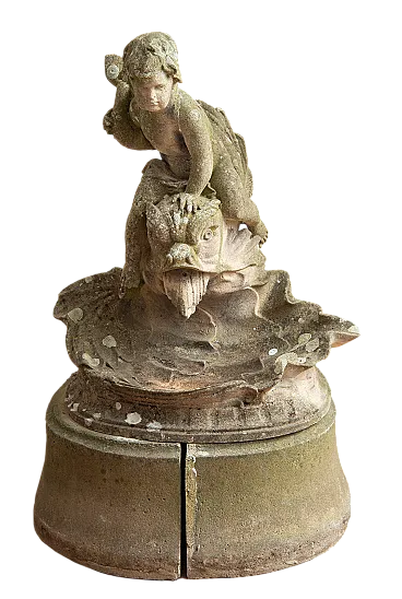 La scultura è a tutto tondo e a dominare la scena è un grande putto che cavalca un delfino.