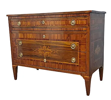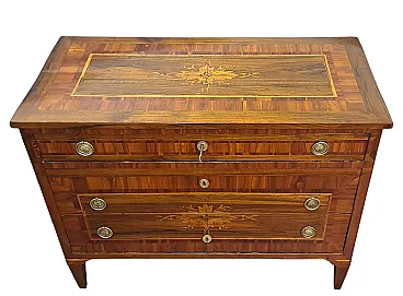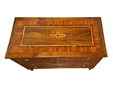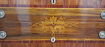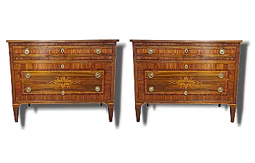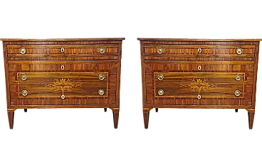 Coppia di cassettoni interamente lastronati in legno di noce, ciliegio, bois de rose e bosso.