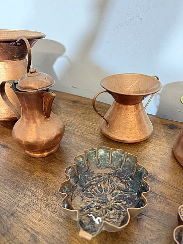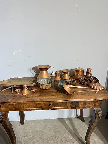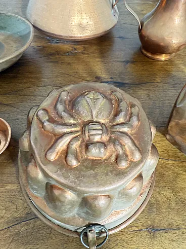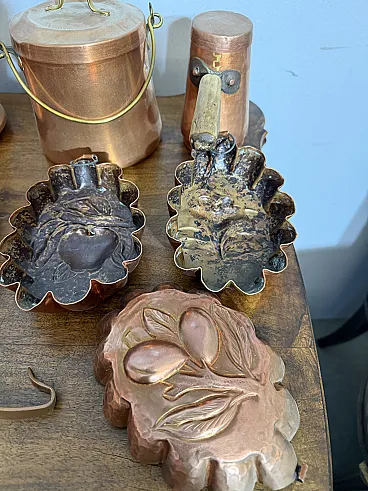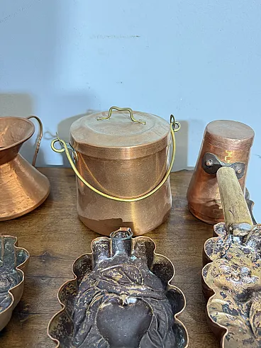 Lotto di 15 oggetti da cucina in rame antichi, primi '900